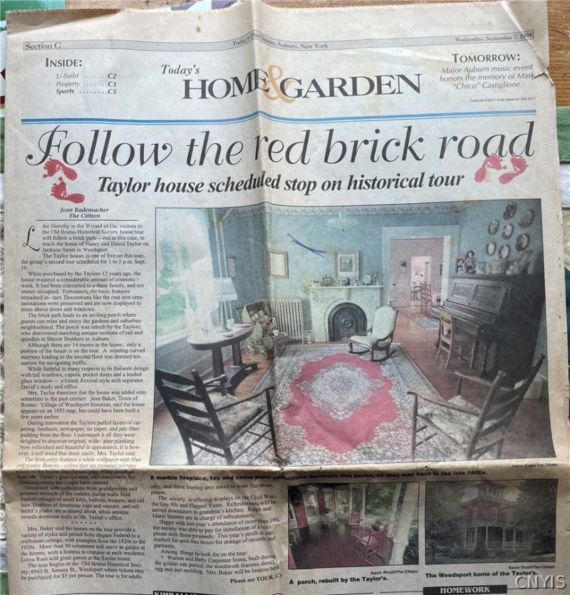 This stunning 6-bedroom, 4-bath Italianate gem blends timeless 1860s craftsmanship with a top-to-bottom renovation for today's lifestyle. Every detail has been thoughtfully restored or renewed, preserving its historic charm while adding modern comfort. Step inside to a bright, open layout where wide-plank floors flow throughout. The spacious first-floor primary suite offers a private entrance and deck, providing a serene retreat. The heart of the home is the custom kitchen - a showstopper with maple cabinetry, granite counters, spalted maple and resin-pour island, and premium new appliances, including an Italian-made FORNO microwave drawer. The inviting dining and living spaces feature beautiful finishes and abundant natural light. Convenience is everywhere - laundry on both levels, multiple walk-in closets, and a rebuilt south wing of the home. The first-floor mudroom is a true standout, featuring a custom dog wash station with marble-look tile, natural wood trim, and a sleek pull-down faucet - perfect for pets, boots, and more. Upstairs, generous bedrooms and updated baths offer comfort for family or guests. Outside, enjoy a spacious porch with an antique stained-glass light and room for future landscaping touches. Major updates include new insulation, windows, mechanicals, and more - all completed with care to honor the home's original character. Located in the charming village of Weedsport, this property is close to schools, shops, and commuter routes. A rare opportunity to own a fully renovated historic home that's both elegant and practical - ready for its next chapter.